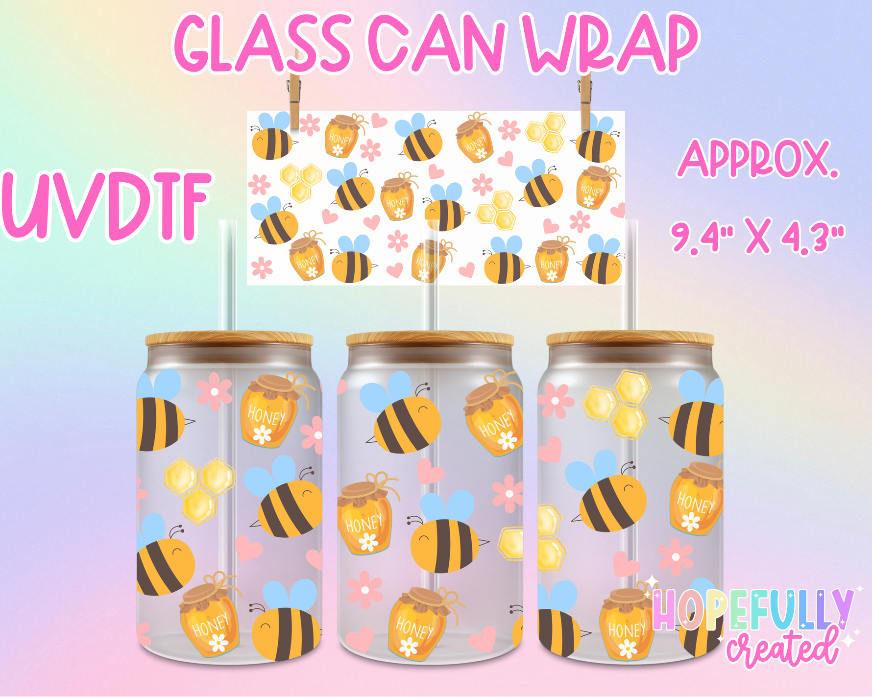 Bees UVDTF Glass Can Wrap